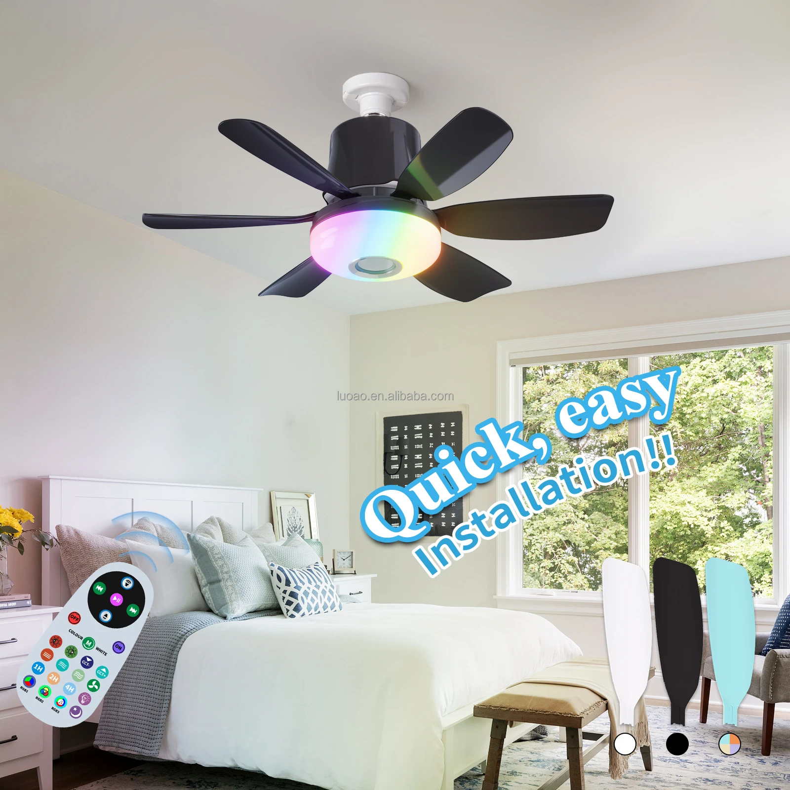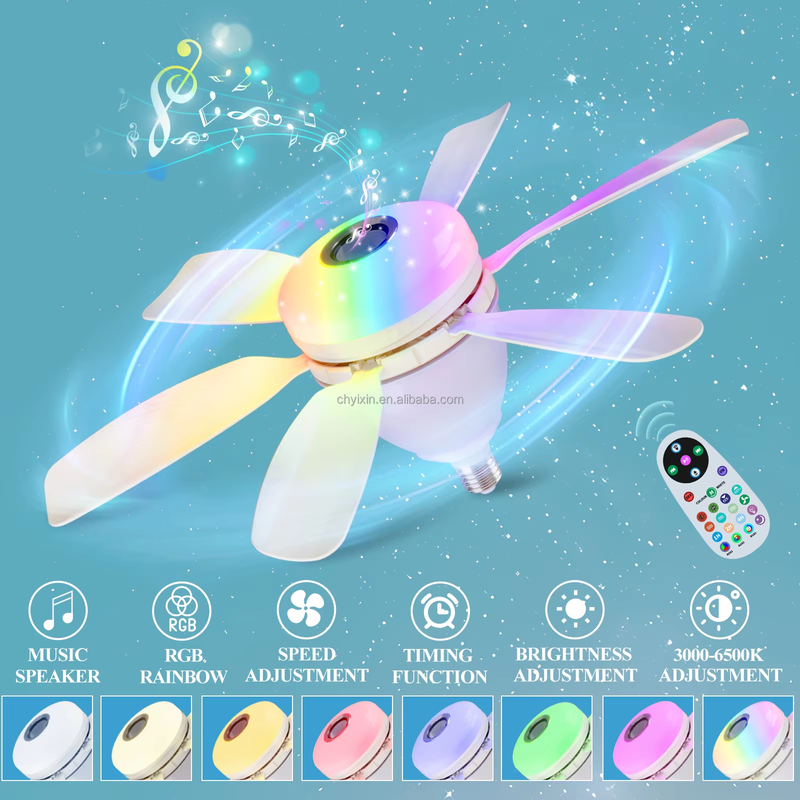 Ceiling Led Fan Light Moving Head Intelligent Dimming Fan Bulb Home Decor 360 Rotating Remote Control Modern E27 Ceiling Fan