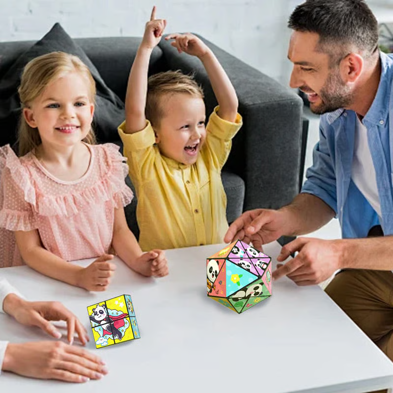 FOLDABLE AND TRANSFORMATIVE - The panda magic cube can be folded and reconfigured into various shapes and patterns, providing endless hours of creative exploration. Kids can experiment with different folding techniques and discover new ways to manipulate the cube, challenging their problem-solving skills.