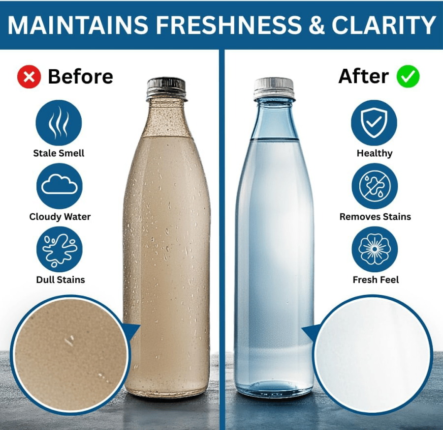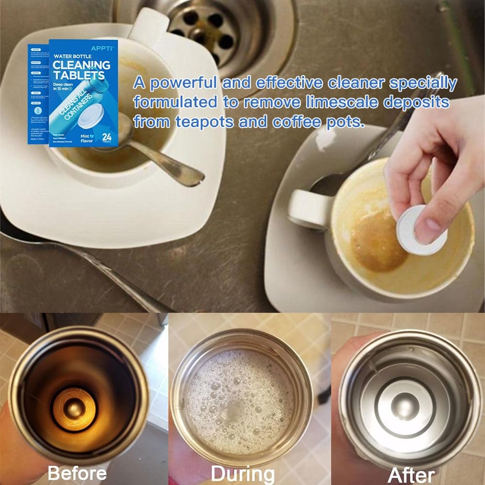 No scrubbing needed, just drop a tablet in water and let it work instantly. Perfect for water bottles, stainless steel bottles, coffee mugs, tumblers, hydro flasks, hydration reservoirs, coolers, and other hard-to-clean containers.