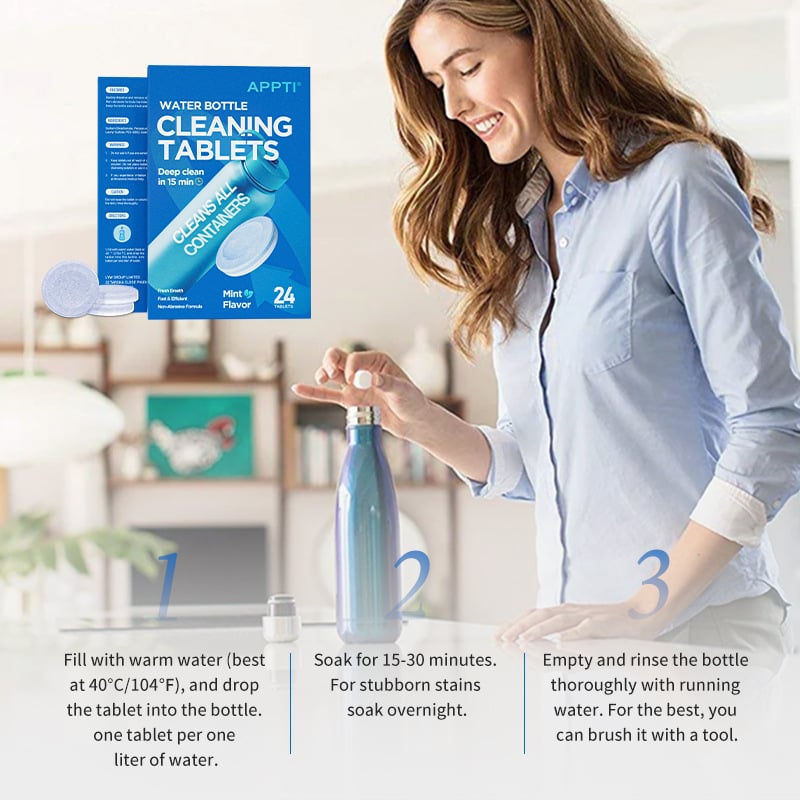 Specially formulated tablets tackle tough stains, tea and coffee marks, protein residue, and lingering odors, leaving your bottles fresh and ready for your next drink.